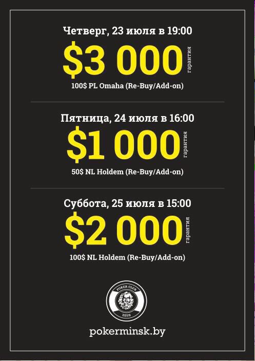 23 июля Pl Omaha 100$ ReBuy/AddOn 3.000$ Grtd!